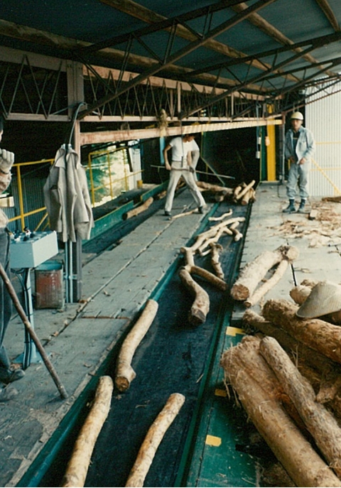 | 1966年 | 高知市桟橋にて小径木広葉樹露天加工開始 |